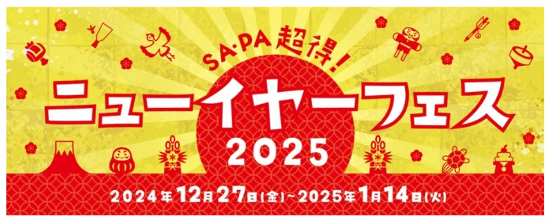 年末年始の楽しみがさらに広がります!2024年12月27日から2025年1月14日までの間、高速道路のサービスエリア(SA)やパーキングエリア(PA)で「SA・PA超得!ニューイヤーフェス2025」が開催されます。