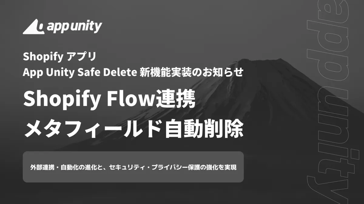 株式会社リワイアが自社で提供しているShopifyアプリ「App Unity Safe Delete」がアップデートしました。このバージョンからは、Shopify Flowとの連携機能とメタフィールドの自動削除機能が新たに実装され、顧客データの管理が一段と効率的かつ安全になります。
