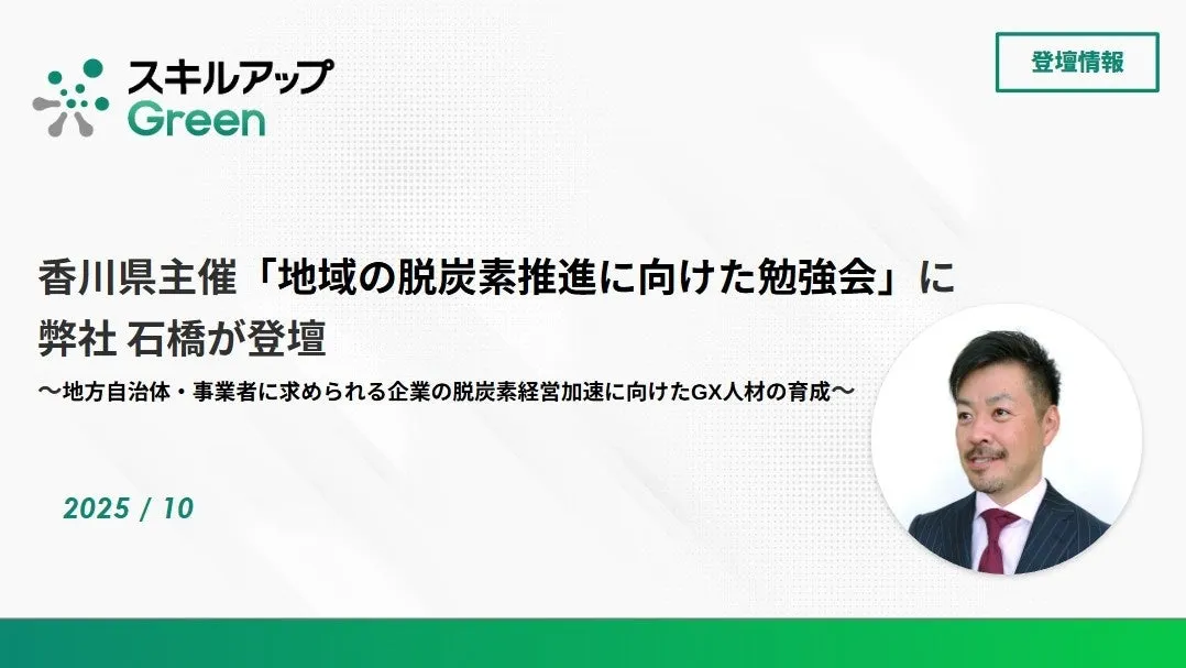 2023年10月20日、香川県で「地域の脱炭素推進に向けた勉強会」が開催され、株式会社スキルアップNeXtの執行役員である石橋和幸氏が講演を行いました。このイベントは、香川県が主催し、地域の事業者や行政が協力して脱炭素化に向けた取り組みを進めることを目的としています。