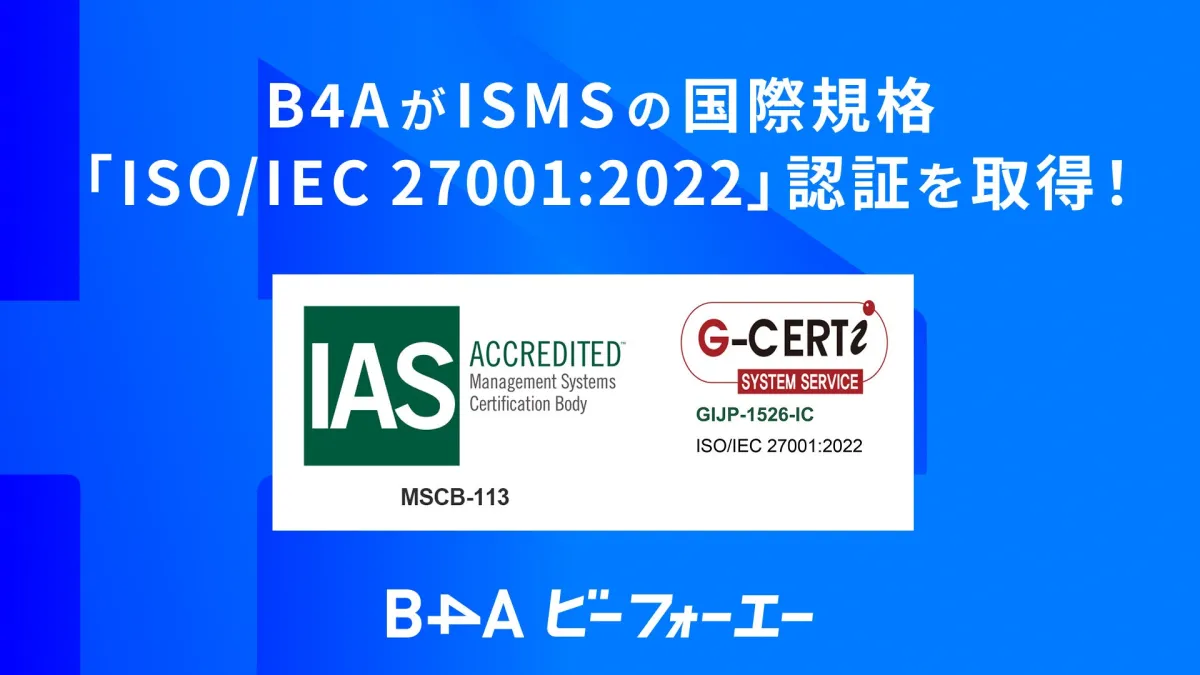 株式会社B4A(代表取締役社長:植松正太郎)は、自由診療クリニック向けのDXツール「B4A」が、2025年1月21日付で国際規格である「ISO/IEC 27001:2022」の認証を取得したことを発表しました。この取得は、情報セキュリティマネジメントシステム(ISMS)の一環として、B4Aが取り組んでいる情報の保護と安全管理における成果を示すものです。