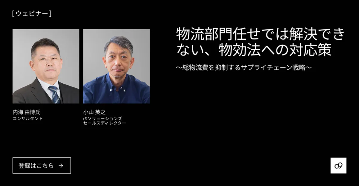2026年2月に開催されたウェビナー『物流部門任せでは解決できない、物効法への対応策 ~総物流費を抑制するサプライチェーン戦略~』のオンデマンド配信が始まりました。これは、サプライチェーン計画プラットフォームを提供するo9ソリューションズが主催しており、特に改正物流効率化法が施行された背景を受けて、企業が直面する課題について取り扱っています。