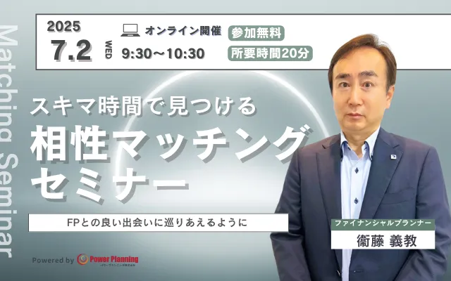 2023年7月2日(月)午前9時30分、無料のオンラインセミナー「相性マッチングセミナー」が開催されます。このセミナーは、特に忙しい方々に最適な形で、自分に最も合ったファイナンシャルプランナー(FP)を見つける手助けをするために企画されました。運営は、無料マネーセミナーサービス「アットセミナー」を提供するパワープランニング株式会社が行っています。