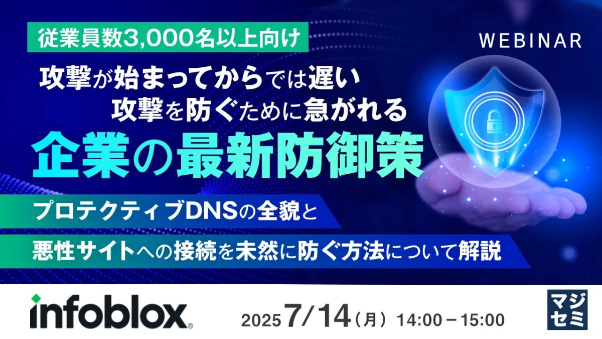 サイバー攻撃が日々進化する中、特に近年のDNS(Domain Name System)を悪用した攻撃が注目を集めています。多くの企業がエンドポイントの防御に力を入れている一方で、DNSを介した攻撃に対しては不十分な対策が見られます。そこで、弊社マジセミでは、こうした企業向けのウェビナーを開催し、最新の防御策について詳しく解説します。