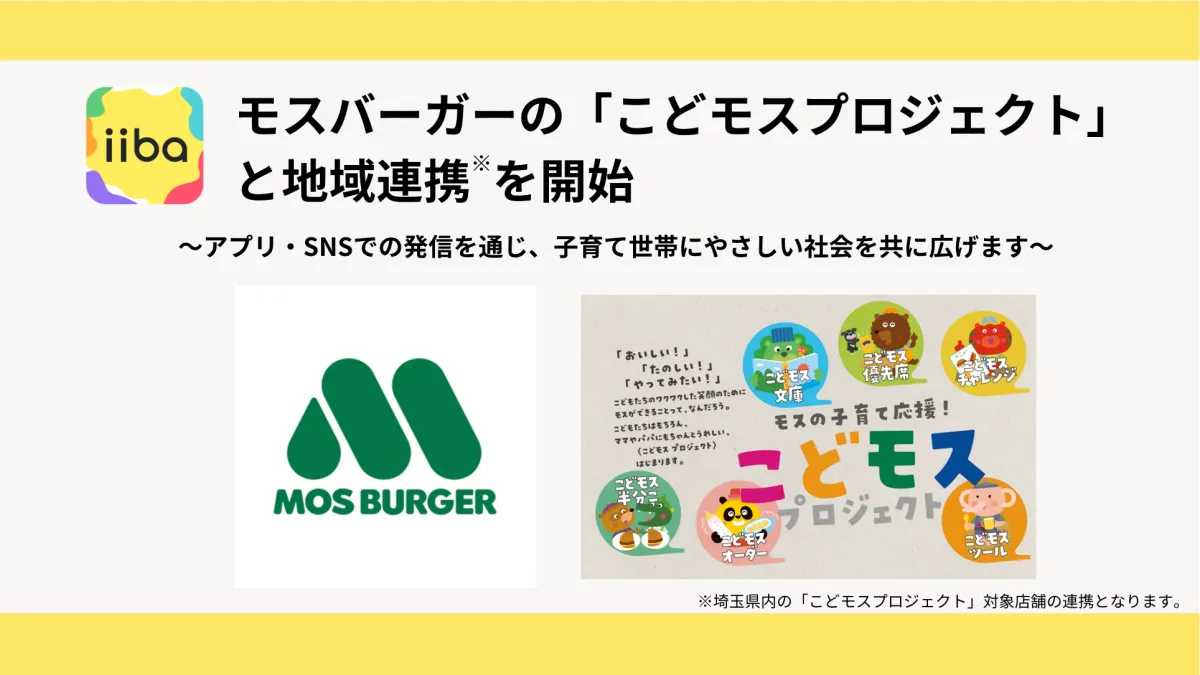 このたびの提携では、両社の強みを生かし、子育て世帯にやさしい環境を整えるための新たな機会を提供します。モスバーガーの「こどモスプロジェクト」に参加している店舗の情報を「iiba」のプラットフォームに統合し、子育て世帯がその魅力を実際に体験しやすくします。