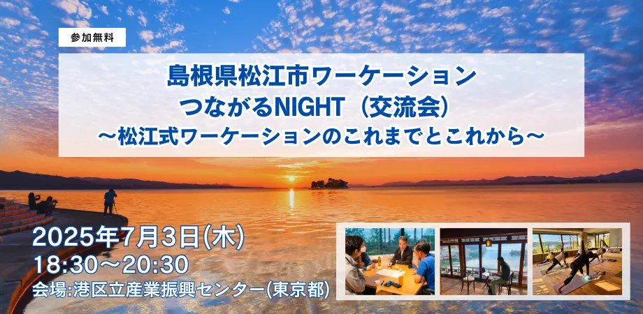 松江市の独自のワーケーションスタイルを伝えるためのイベントが、2025年7月3日(木)に東京で開催されることが決定しました。このイベントは「松江式ワーケーション」として知られる取り組みの全部を知ることができる絶好の機会です。