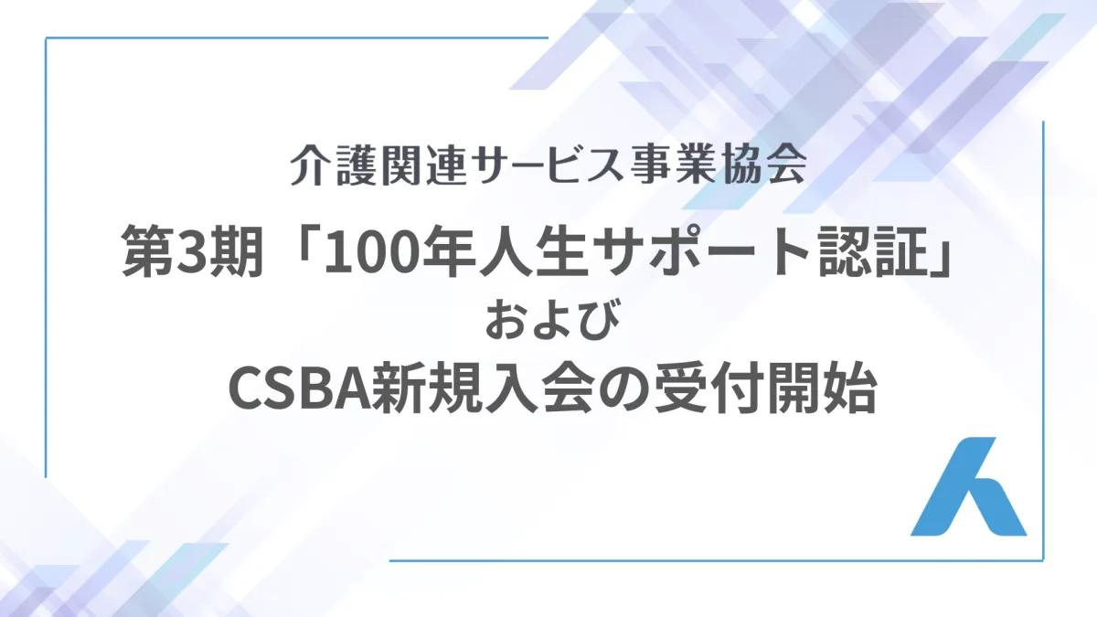 一般社団法人 介護関連サービス事業協会(CSBA)は、今春から始まる「100年人生サポート認証」の第三期に向けた準備を着々と進めています。この制度は、介護サービスの質向上を目指すもので、四半期ごとの定期的な審査が行われることとなります。