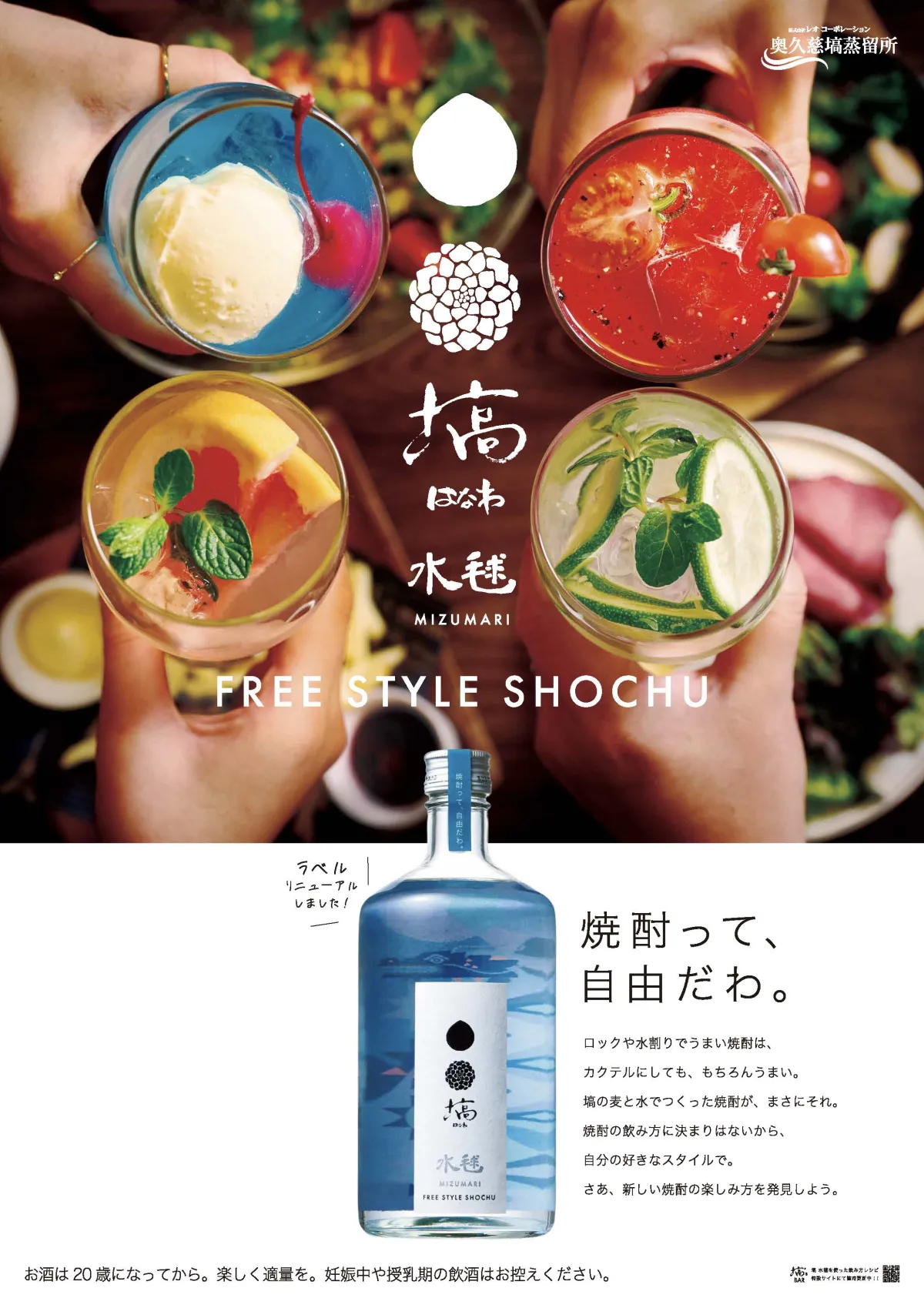 福島県東白川郡塙町の「奥久慈塙蒸留所」では、これまでご愛顧いただいていた本格麦焼酎「水毬」と「燈毬」をリブランディングし、新たに「塙(はなわ)」というブランド名で展開することを発表しました。この新ブランドのローンチに際して、「FREE STYLE SHOCHU」というコンセプトが掲げられ、焼酎本来の魅力を感じながら、自由で楽しい飲み方を提案することを目指しています。