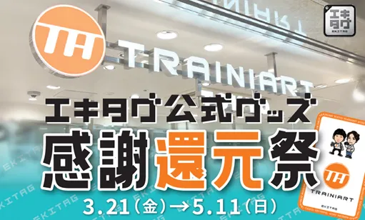 2025年3月21日(金)、JR東日本商事が運営する鉄道グッズショップ「TRAINIART(トレニアート)」にて、エキタグ公式グッズの取り扱いが始まります。これを記念して、特別なイベント「エキタグ公式グッズ感謝還元祭」も開催され、この機会に多くのファンの皆様に向けた特別企画が用意されています。