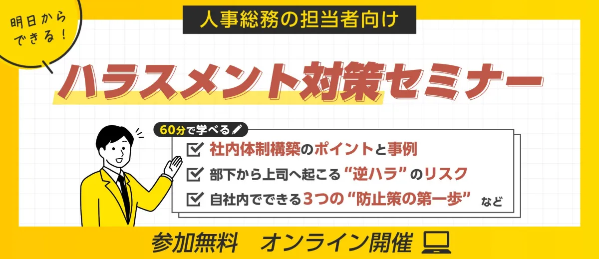 セミナーに参加することで、職場環境の改善や社員の定着率向上、訴訟リスクの低減に繋がるでしょう。興味のある方は、是非お申し込みを。