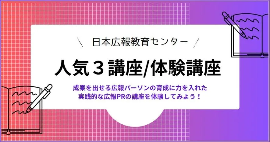 日本広報教育センターが特別に提供する「人気3講座/体験講座」が123008日にスタートします。なんと、通常価格5,000円(税込)が80%オフの1,000円で参加できるキャンペーンです!