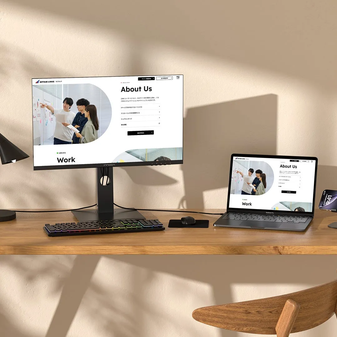 現代の仕事では、マルチタスクが求められる場面が多いですが、INNOCN 24C1F-Pはその設計をそのまま反映しています。USB-Cポートからの65W給電に対応し、ノートパソコンとのシームレスな接続が可能です。これにより、データの転送やディスプレイの拡張、デバイスの充電を一本のケーブルで行えるため、作業環境がスッキリと整います。加えて、高さ調節や画面の回転も可能で、横向き・縦向きの表示を瞬時に切り替えることができるので、コーディングや長文資料の閲覧も快適です。