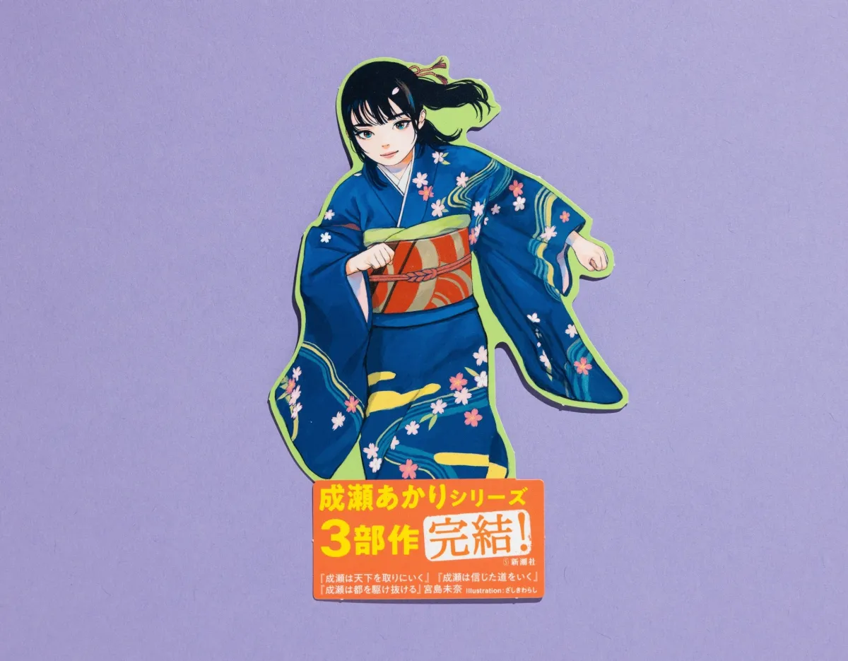 2023年12月1日に発売された『成瀬は都を駆け抜ける』が、発売からわずか3か月で33万部の売り上げを記録し、シリーズ累計210万部を突破しました。これを記念して、特製のオリジナルしおりが3月上旬から全国の書店で配布されることが決定しました。特典となるしおりには、着物姿の成瀬が描かれており、イラストは人気イラストレーターのざしきわらしさんによるものです。