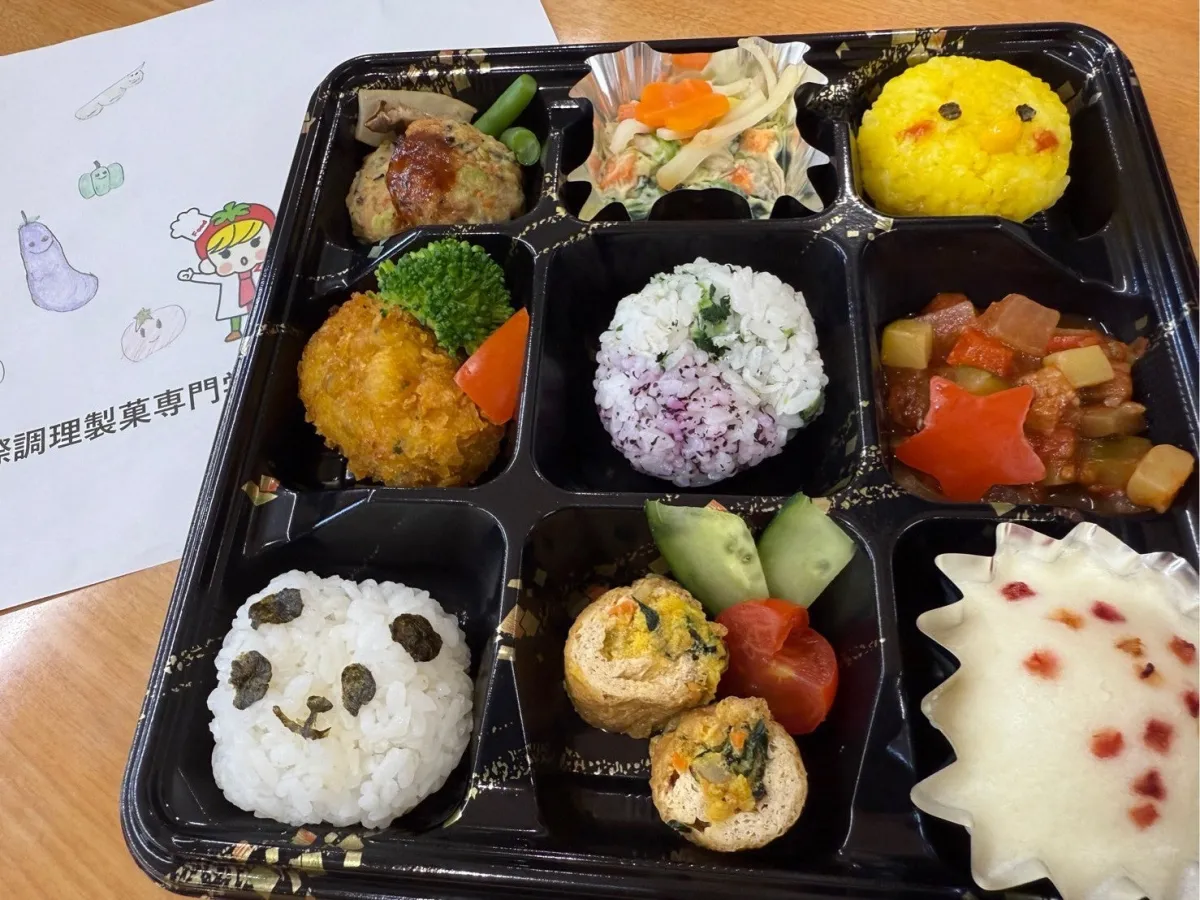 学生たちは、デザインや栄養バランス、食材選びに至るまで、細心の注意を払って準備を行いました。お弁当の中身は、子どもたちが興味を持てる形や色に工夫され、見た目にも楽しく、食べやすいものになっています。