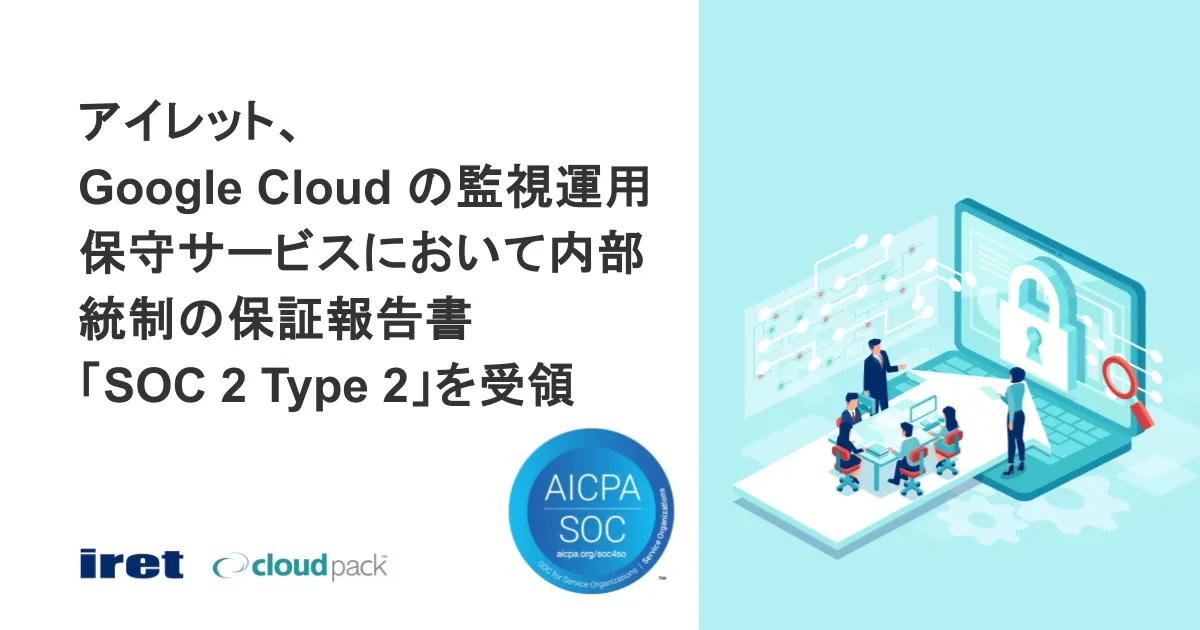 アイレット株式会社は、クラウドサービス「cloudpack」を通じて提供するGoogle Cloudの監視運用保守サービスにおいて、SOC 2 Type 2保証報告書を受領したことを発表しました。SOC 2は、米国公認会計士協会(AICPA)が定める基準で、特に受託サービスにおける内部統制の有効性を評価する重要な報告書です。