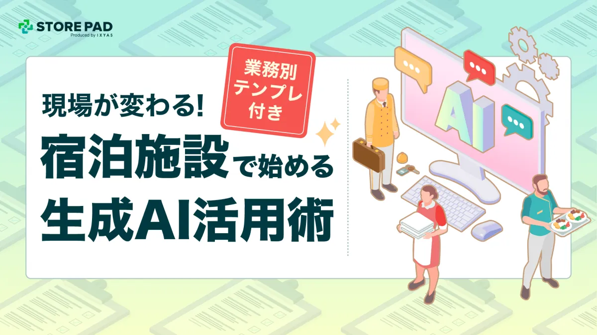 このガイドは、AI搭載型の店舗・施設情報発信・分析プラットフォーム「STOREPAD」を運営するイクシアス社が策定したもので、宿泊業界に携わる事業者を対象にした内容となっています。特に、スタッフの教育や接客支援、バックヤード業務、販促活動など多岐にわたる業務の中で、生成AIを使った具体的な活用法が詳しく紹介されており、実践的な事例も多数掲載されています。