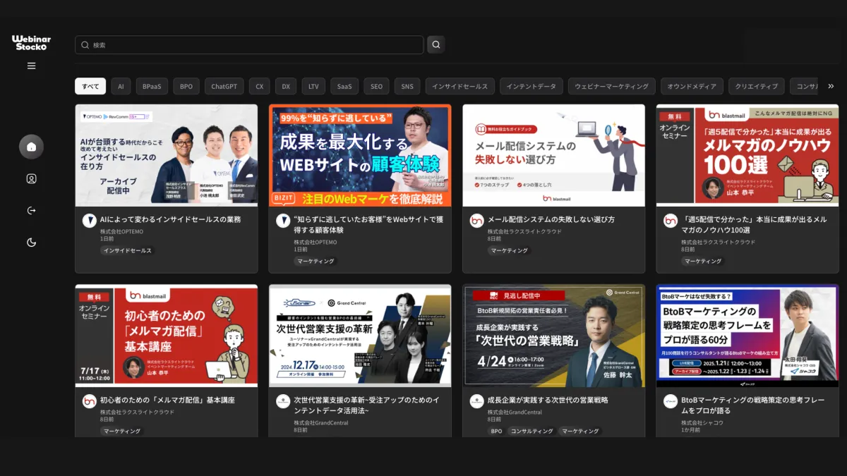 WebinarStock」は、セールス・マーケティング分野に特化したウェビナーアーカイブを無料で視聴・掲載できるサービスです。これにより、企業の成長が不可欠な営業・マーケティング部門の知識のアップデートを支援します。