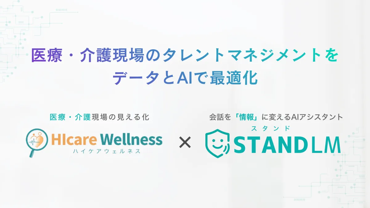 医療や介護の現場で業務の効率化、特に人材マネジメントが求められています。そんな中、株式会社プラスアルファ・コンサルティングが提供する統合型ケアマネジメントシステム「ハイケアウェルネス」と、株式会社ENBASEが開発した音声AIアシスタント「スタンドLM」の両者が、この分野での連携を開始しました。これにより、従来は分断されていた現場のデータと人事データが統合され、より効率的な管理が可能になります。