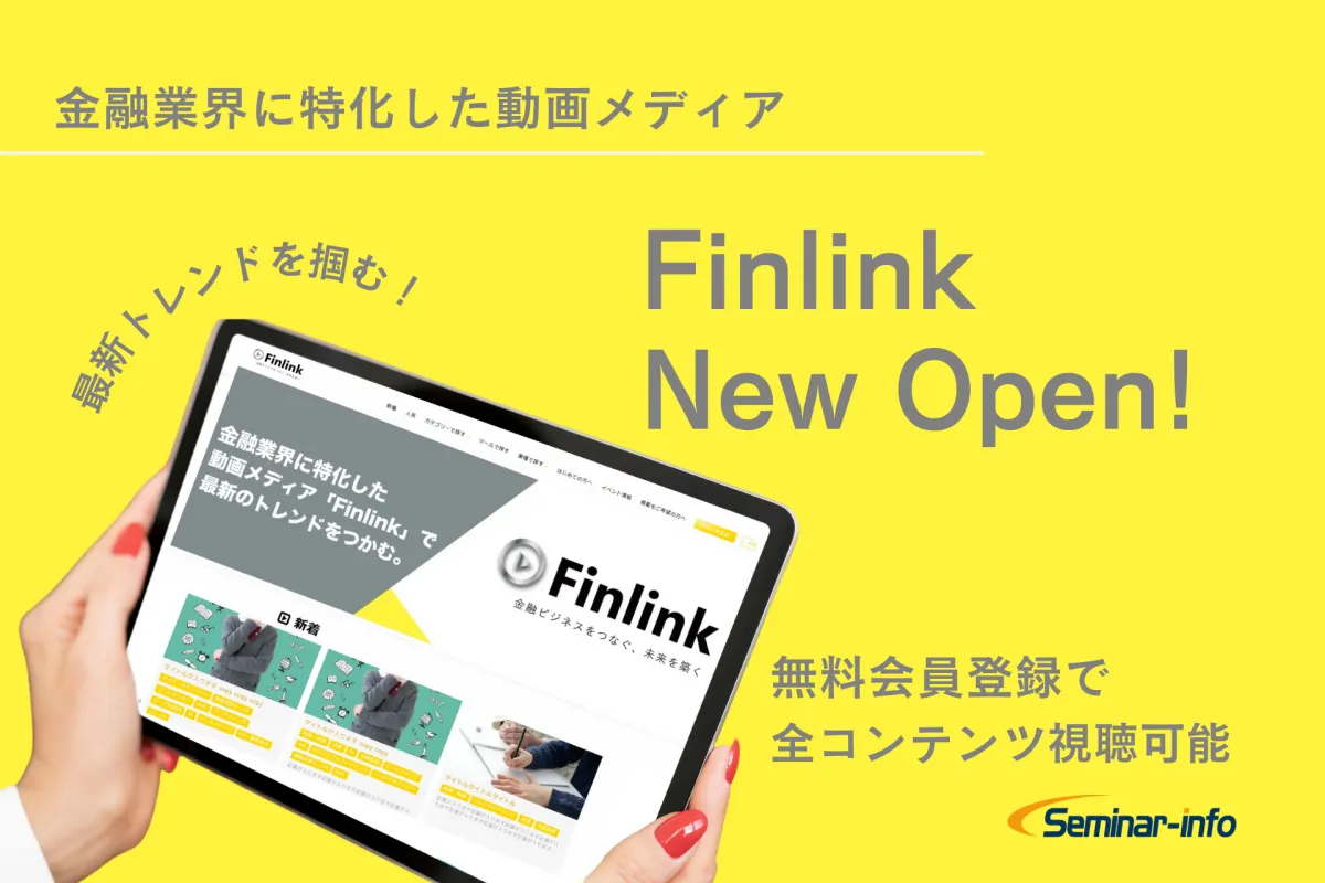 株式会社セミナーインフォが運営する新しい動画メディア「Finlink(フィンリンク)」が、金融業界向けにスタートしました。このメディアは、政治や経済などさまざまな分野で活躍する金融機関のリーダーたちの知見や最新トレンドを、映像を通じて届けることを目的としています。