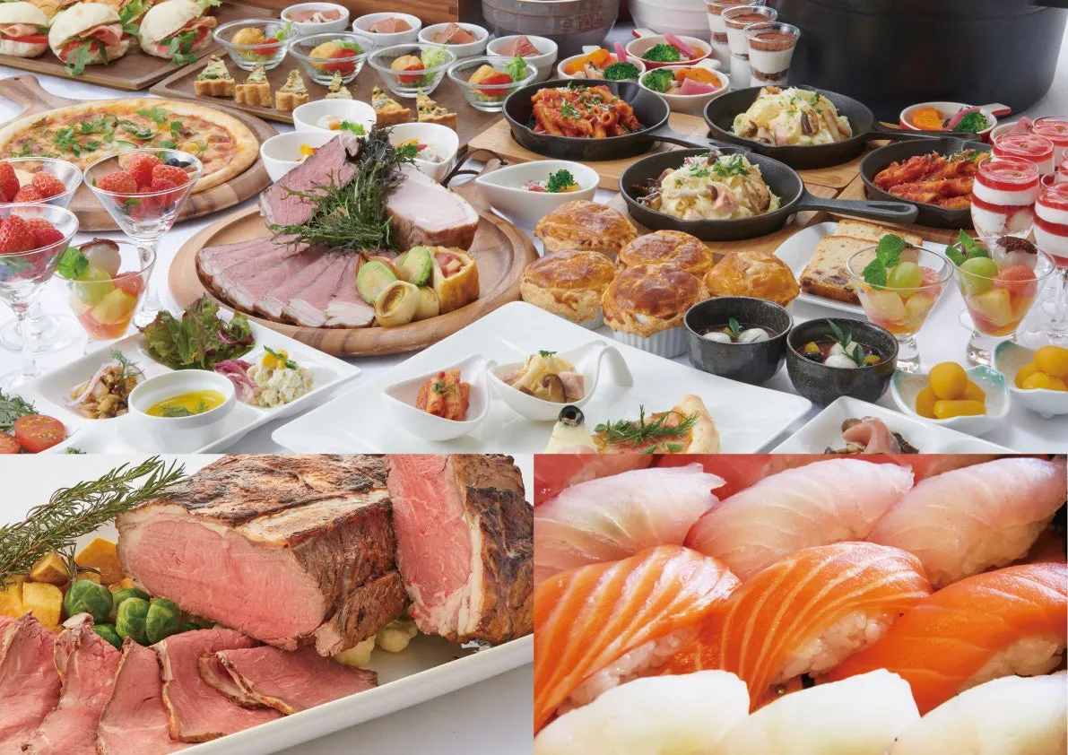 「2025 NEW YEAR VIKING」では、洋食だけでなくお正月の伝統料理も加えた約30種のメニューが用意されています。例えば、タコを使ったガルシア風ポテトサラダやワカサギのエスカベッシュなど、普段から好評を得ている洋食の数々が並ぶほか、握り寿司や本格的なおせち料理も楽しめます。シェフ自慢の料理を味わえる90分間の食べ放題は、ランチやディナーの特別メニューも楽しめるのが魅力です。