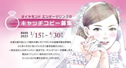 このキャッチコピー募集は、ダイヤモンド エンゲージリングの魅力を幅広く伝える良い機会です。応募は30文字以内、記号を含めての表現が求められます。応募資格は特に制限されていませんが、18歳未満の場合は保護者の同意が必要です。募集期間は2025年1月15日(水)から4月30日(水)までです。ぜひこの機会に、あなたの想いを言葉にしてみてはいかがでしょうか。