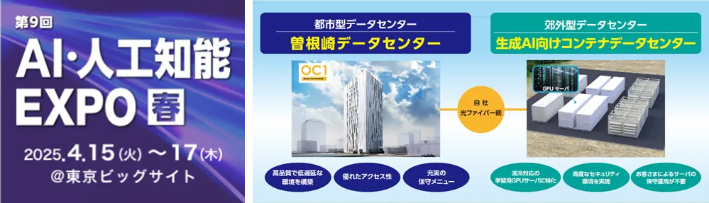 株式会社オプテージは、2025年4月15日から17日にかけて東京ビッグサイトで行われるNexTech Week「第9回 AI・人工知能EXPO春」に出展します。当社のブースでは、都市型データセンター「オプテージ曽根崎データセンター(OC1)」と、郊外型データセンター「生成AI向けコンテナデータセンター」に関する情報を提供予定です。