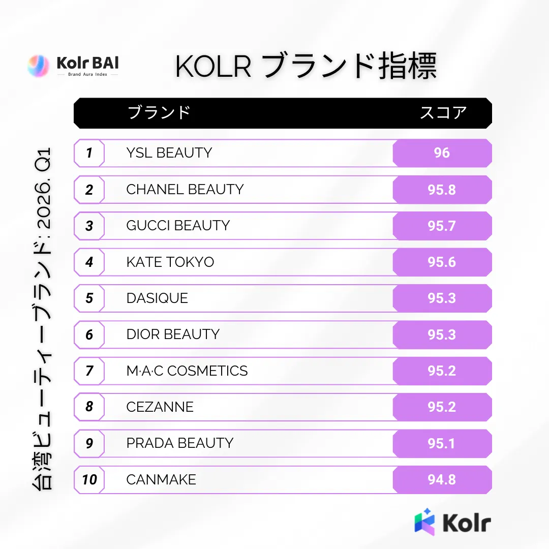 また、ビューティー部門では、YSL BeautyやChanel Beauty、Gucci Beautyといった名だたるブランドが上位を獲得しています。これらのブランドは著名クリエイターとの関係を構築し、さらに新しい才能を起用することで、高い信頼感と話題性を両立させています。
