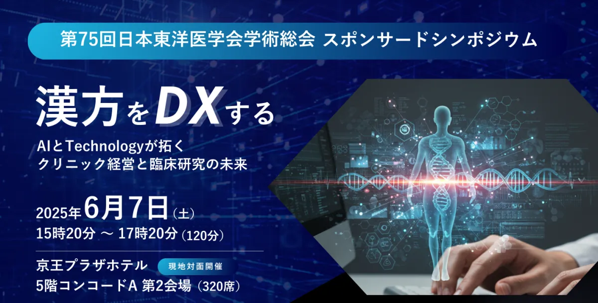 VARYTEX株式会社は、2025年6月6日から8日まで開催される第75回日本東洋医学会学術総会の一環として、6月7日に"漢方をDXする~AIとTechnologyが拓くクリニック経営と臨床研究の未来~"をテーマにしたスポンサードシンポジウムを実施します。このシンポジウムは、VARYTEXと新たに設立される漢方DX研究会との共催となります。