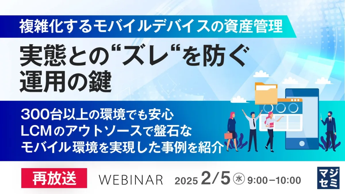 企業が直面する複雑なモバイルデバイス管理に関心を持つ皆様に朗報です。2024年11月20日に開催されたセミナーが、参加者の要望に応えて再放送されることが決定しました。本ウェビナーでは、モバイルデバイスの資産管理における課題と解決策について詳しく解説します。