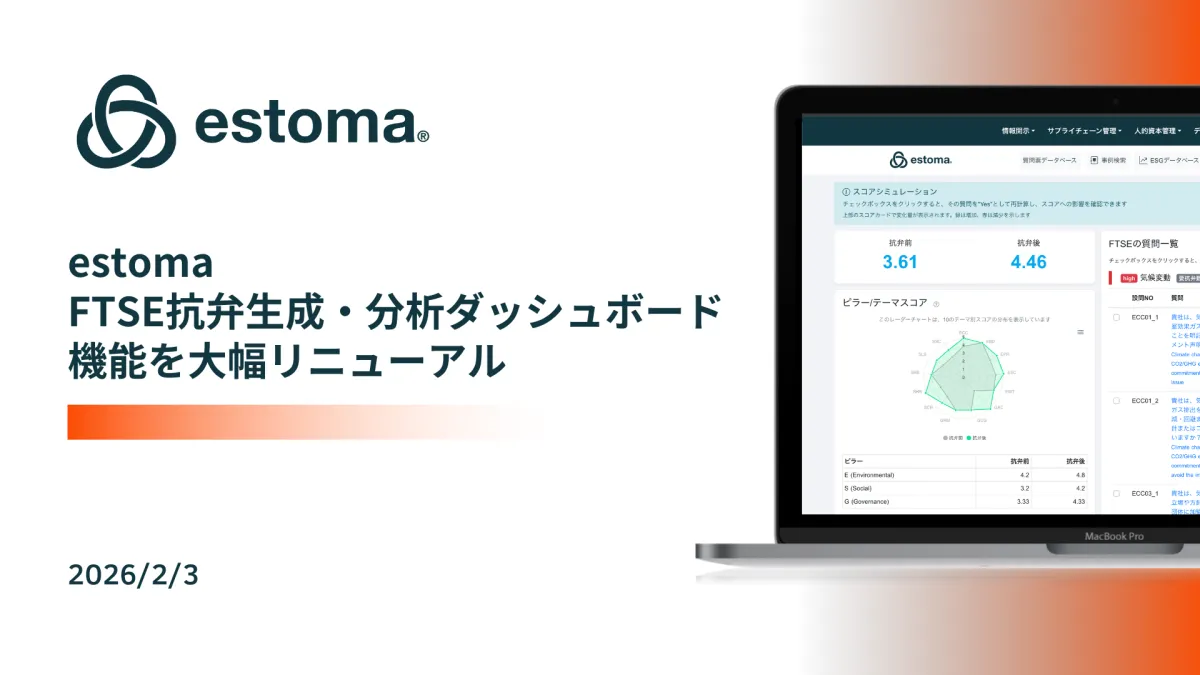 株式会社estomaは、東京千代田区に本社を置くソーシャルベンチャー企業であり、最近、FTSE評価に対応する新しいダッシュボード機能を発表しました。このダッシュボードは、AIを活用して業務を統合的に管理し、作業工数を最大75%削減できるとされています。これにより、企業はFTSEに関連する手続きを迅速かつ効率的に行うことが可能になります。
