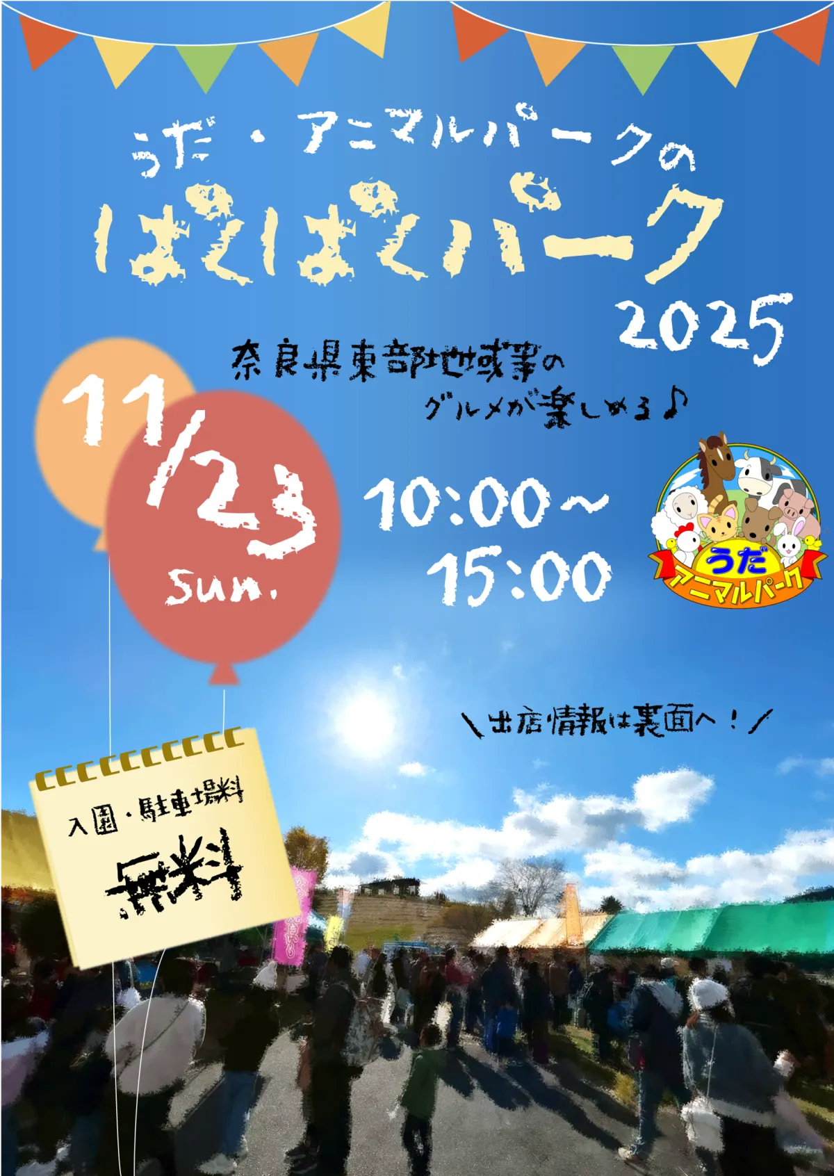 令和7年11月23日(日曜日)に、奈良県の「うだ・アニマルパーク」で特別なグルメイベント「ぱくぱくパーク2025」が開催されます。開催時間は午前10時から午後3時まで。このイベントでは、県東部地域の様々な飲食店が一堂に集まり、季節ごとの美味しい料理やスイーツを紹介します。