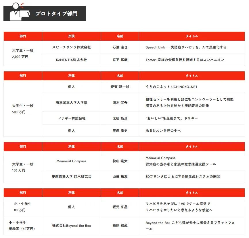 また、アイディア部門で受賞した井上芽依氏は、「当事者や特性を持つ人々への支援に焦点をあてている点が他と違う」と強調し、社会的な意義を感じていることを明かしました。益田岳氏は、「動くものを作り、現場で使用し、フィードバックを元に改善していく第一歩を踏み出せた」と語り、今後の展開に期待を寄せていました。