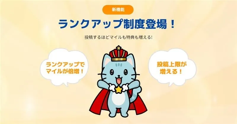 ジオテクノロジーズ株式会社が手掛けるポイ活アプリ『ジオクエ』に、新たな機能「ランクアップ制度」が導入されました。この制度は、ユーザーの投稿実績に基づいてランクが決まるもので、ランクが上がるに連れて、得られるマイルが増加する仕組みです。最上位ランクのゴールドに到達すると、なんと通常の3倍のマイルを獲得することができます。