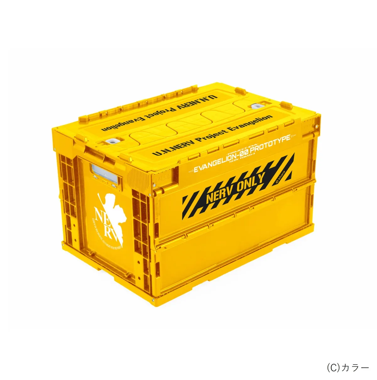 商品の最大の魅力は、その美しいデザインと実用性です。両側面には「EVANGELION-00 PROTOTYPE」とプリントされており、目を引くビジュアルが施されています。実際の物流現場での使用を想定したオリコンが素材として用いられ、強度や耐久性は折り紙つきです。キャンプやアウトドア用品の収納にも便利な50.1リットルの大容量を誇りながら、折りたたみ時にはわずか9.5cmというコンパクトさも兼ね備えています。