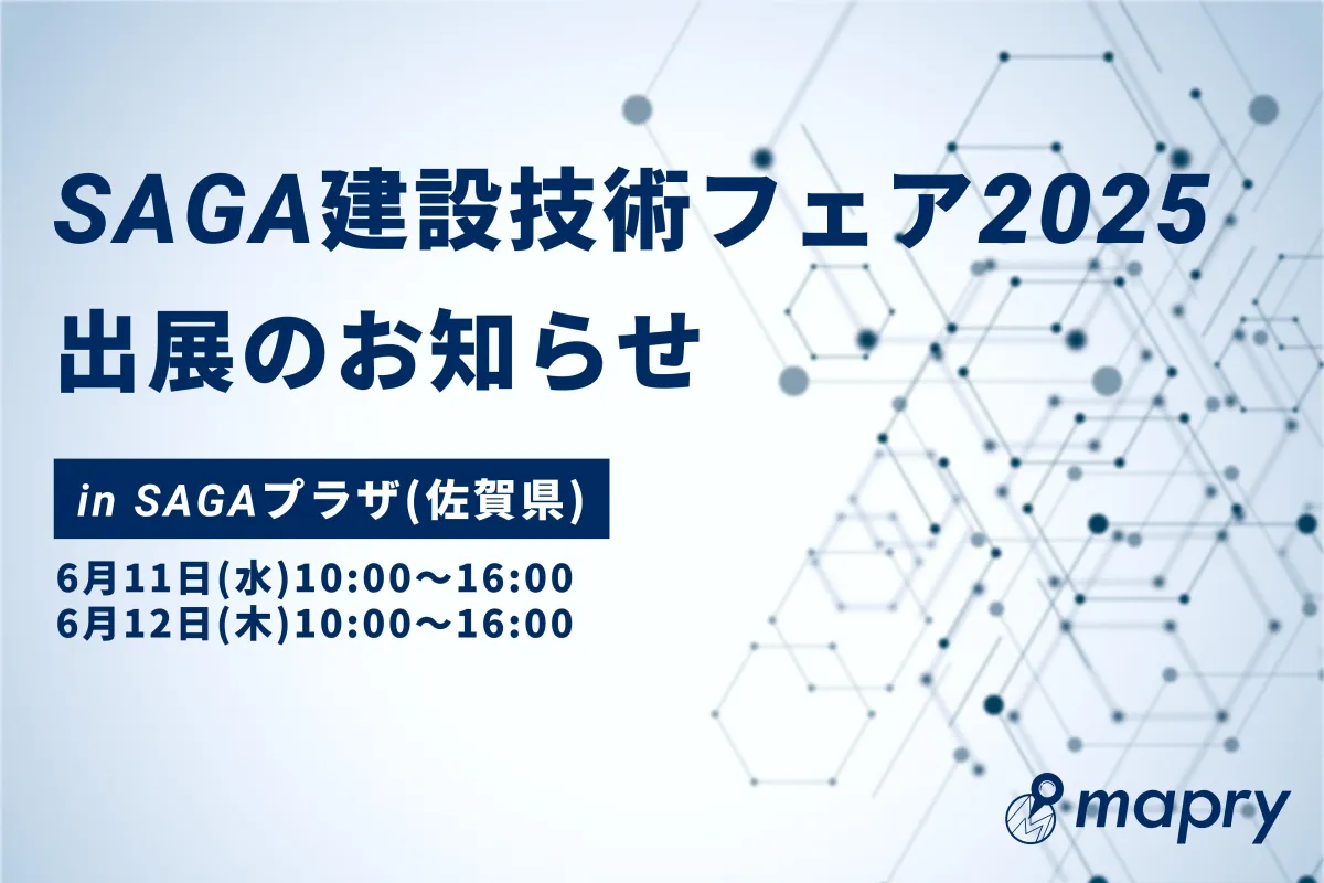株式会社マプリィは、2025年6月11日(水)から12日(木)までの2日間、佐賀県のSAGAプラザで開催される「SAGA建設技術フェア2025」に出展します。このイベントには、国内外から多くの建設関連企業が参加し、最新技術や製品が展示されることで知られています。