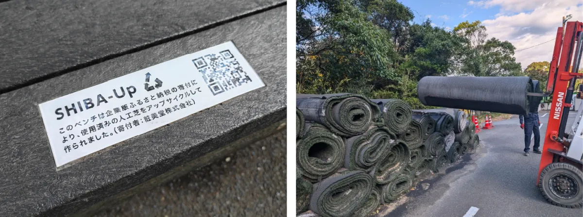「SHIBA-Up」は、サッカーグラウンド等から出る廃棄予定の人工芝片をアップサイクルし、ベンチへと変える取り組みです。今回で3期目となるこのプロジェクトでは、横須賀市内のフットサル施設グラウンドから回収された人工芝を使用し、廃棄物の削減とリサイクル効果を大幅に向上させることに成功しました。新たに製造されたベンチは、横須賀市根岸交通公園に寄贈され、訪れる人々に環境意識を啓発する役割を果たしています。完成したベンチには、QRコードが添付されており、使用済み人工芝の回収の様子を紹介するページへのリンクが設けられています。