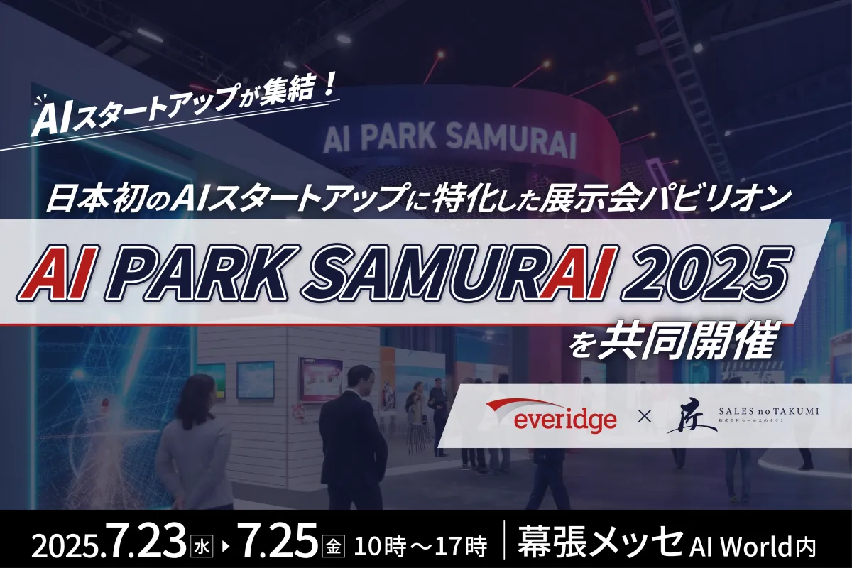 この度、株式会社セールスのタクミとエバーリッジ株式会社が共同で、日本初のAIスタートアップに特化した展示会パビリオン『AI Park SAMURAI 2025』を開催することが決定しました。これは、2025年7月23日から25日に幕張メッセで行われるAI総合展示会『AI World』内に設けられるエリアです。新しい技術の体験と発信の場を提供し、約20社のスタートアップが初めての展示機会を得ることになります。