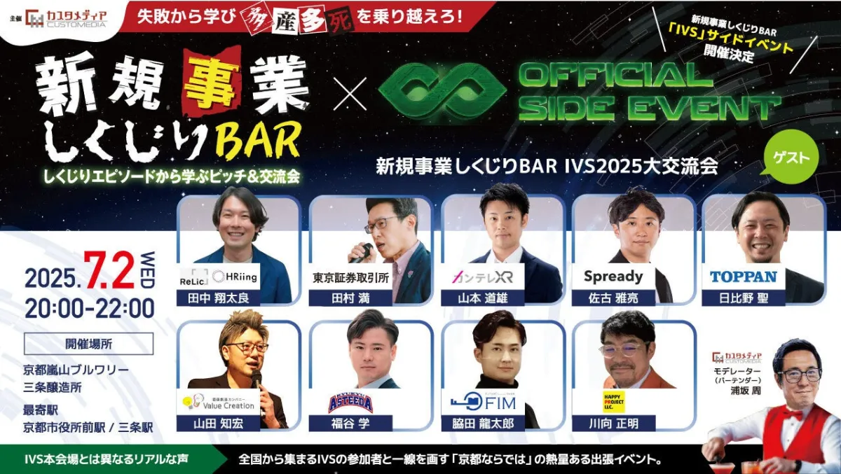 株式会社Relicが、2025年7月に行われる国内最大のスタートアップカンファレンス「IVS2025」に関連したサイドイベント、「新規事業しくじりBAR『IVS2025』大交流会」に参加することを発表しました。このイベントは、京都嵐山ブルワリー三条醸造所で、7月2日(水)20時から開催されます。