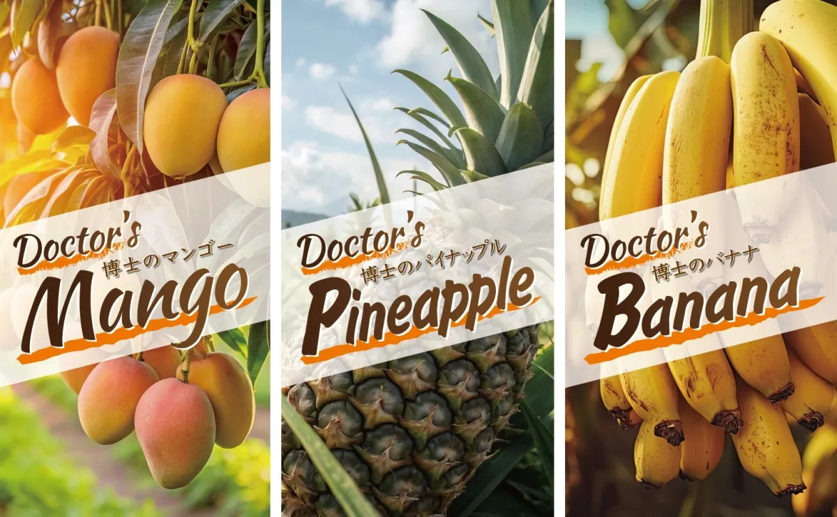 展示されるドライフルーツは、「博士のマンゴー」、「博士のパイナップル」、「博士のバナナ」の三種類。これらは、厳選されたベトナム産フルーツを使用し、それぞれが持つ特長を活かした味わいや栄養価を実現しています。