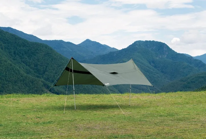タープには、持ち運びに便利な収納バッグが付属しているため、アウトドアシーンでの移動が簡単です。推奨ポールサイズは200cm以上で、シート単体での使用が想定されていますので、別途タープポールが必要です。