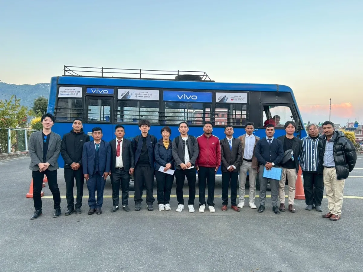 この視察ツアーは、株式会社アズスタッフが主催し、丸中運送の経営企画部部長の石井氏をはじめ、総務人事担当課長北川氏、安全品質担当課長北村氏が参加しました。視察では、ネパールの教習所や日本語教育機関を訪れ、現地のドライバー候補者の運転技術や日本語能力を確認しました。