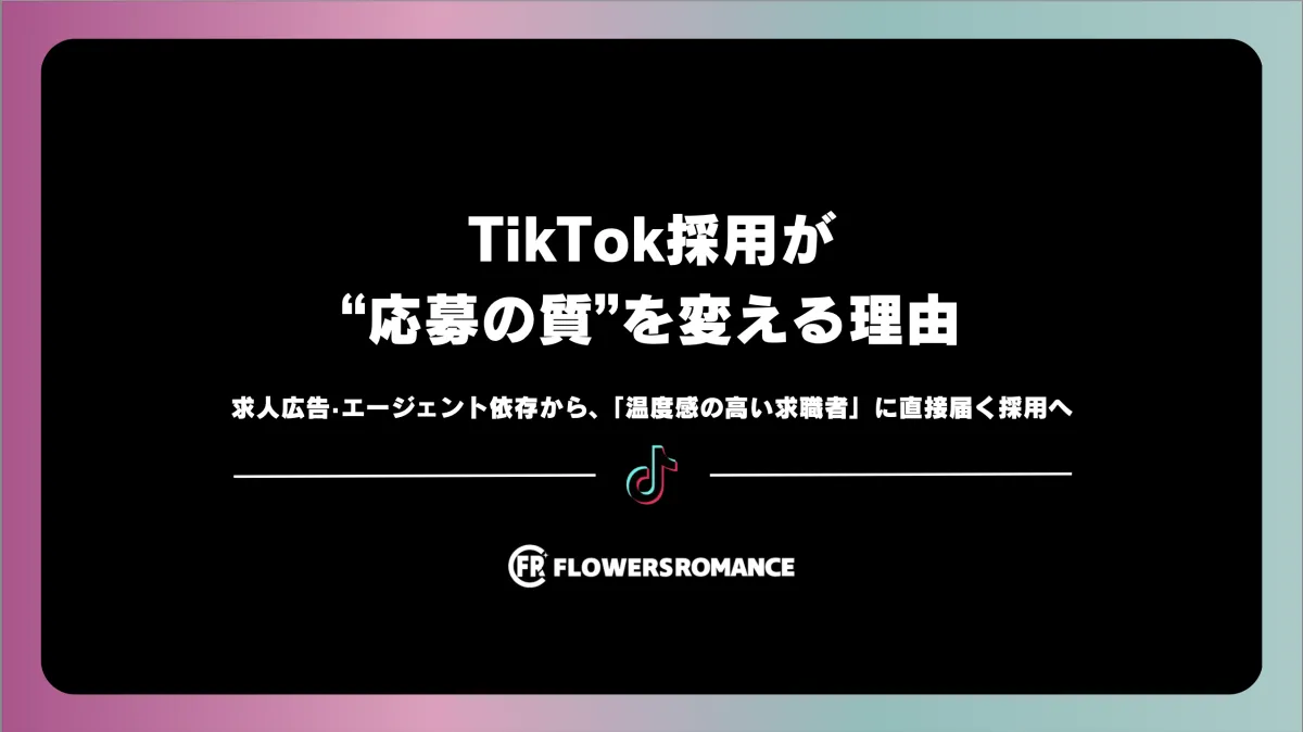 フラワーズロマンスでは、主に二つの資料を提供しています。ひとつは「TikTok採用が“応募の質”を変える理由」と題された資料。これは、AIを駆使したレコメンドシステムを使って、悩みを持つ求職者をターゲットにする方法を説明しています。従来の方法ではなく、応募者の納得感を高めるためのアプローチが解説されています。この資料では、応募につながる心理的導線が整理されており、実際の採用事例も含まれています。