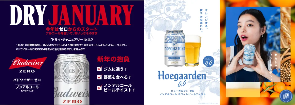 「ドライ・ジャニュアリー」は、12月の行事が終わった後の1月に、体と心をリセットし、健康的な生活を始めることを目的としたムーブメントです。このユニークな時期に、AB InBevでは多くの人にノンアルコールビールの美味しさを体験してもらうために、特別なポップイベントを企画しました。