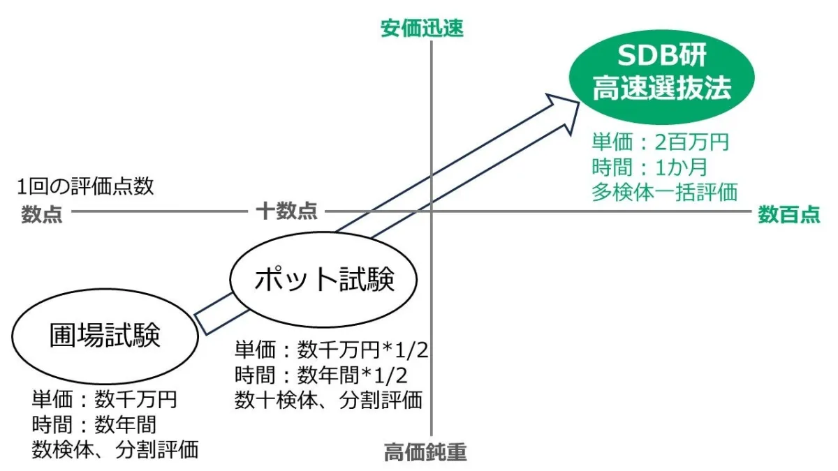 新しい選抜法は、数万の資材の中から迅速に比較できる手法を作り出しました。これにより、生産者は自らの判断で、より良い資材を選べるようになるのです。