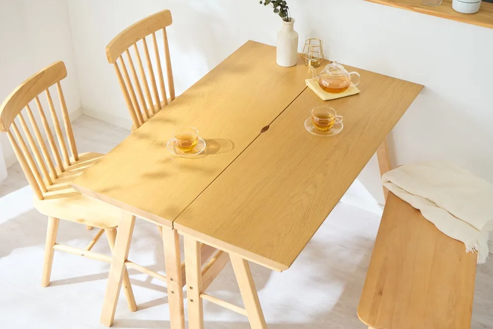 さらに、将来的に生活スタイルや家族構成が変わった際にも対応できるのが、このテーブルの大きな魅力の一つです。L字型や横並び、対面形式のレイアウトなど、用途によって自由に配置を変えることができるため、来客時にも臨機応変に対応可能です。