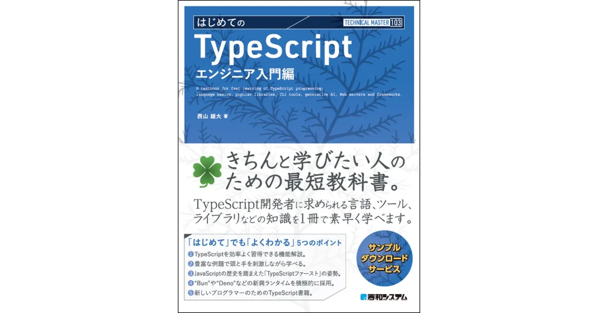現在のウェブ開発において欠かせないプログラミング言語の一つ、TypeScript。2025年2月4日、株式会社秀和システムから新たに発刊される書籍『TECHNICAL MASTER はじめてのTypeScript エンジニア入門編』は、TypeScriptを学ぶための最適な教材です。著者は実績あるエンジニアの西山雄大氏で、日本国内でのTypeScript関連書籍の中でも特に注目されています。