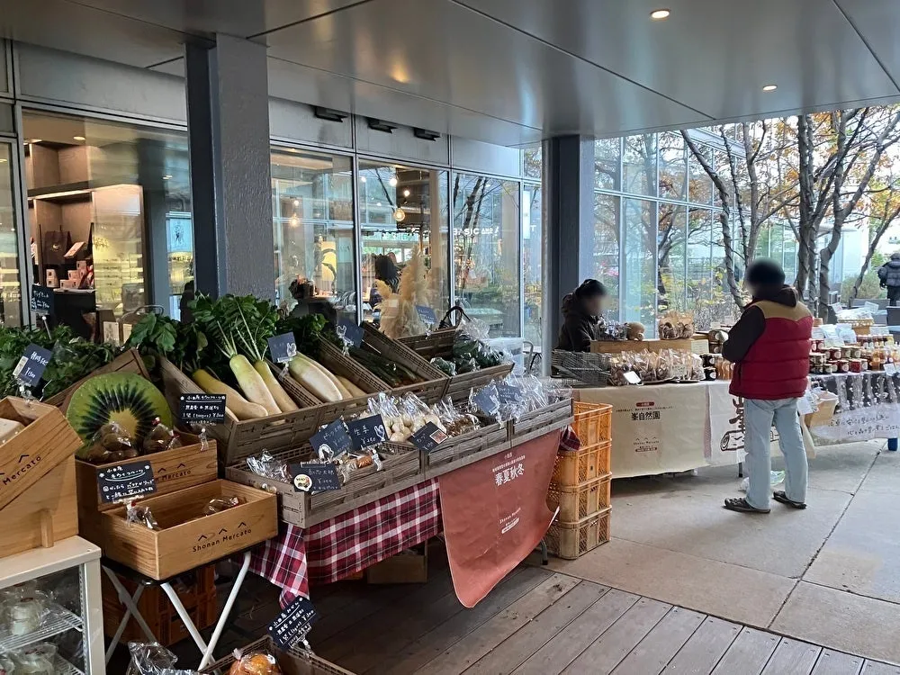 湘南T-SITEは、2014年から毎週土曜日に「湘南メルカート」を開催し、地域の生産者が集う場所としても知られています。このメルカートは、イタリア語で“市場”を意味し、新鮮でオーガニックな食材が源であることが由来です。湘南エリアの生産者が特に意識している「安心・安全」をキーワードに、旬の食材を届けています。