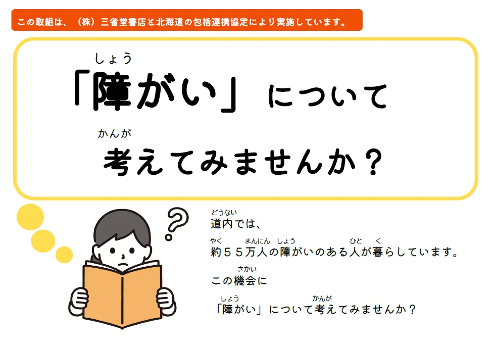 北海道の三省堂書店では、障がい者理解促進ブックフェアが12月16日から31日まで開催されています。本活動は、北海道と三省堂書店の間で締結された包括連携協定に基づき、障がい者福祉に関する理解を深めることを目的としています。