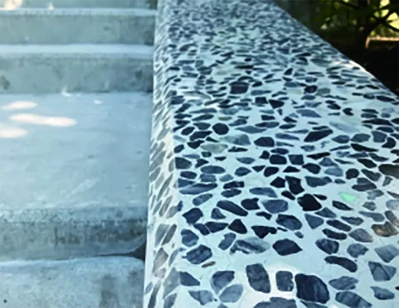 「HARRUZZO」は、事前に砕石をネットに貼り付けた状態で提供され、立ち上がり部やコーナー部の施工までもがジョイントマットのように簡単に行えます。これにより、従来それぞれで苦労していた箇所もスムーズに施工できるのです。この製品の最大の特長は、熟練者でなくても施工が可能であり、従来の方法に比べて作業時間の大幅な短縮や人件費の削減が見込まれる点です。また、その見た目は本格的なテラゾーに引けを取らず、美しい仕上がりを実現します。