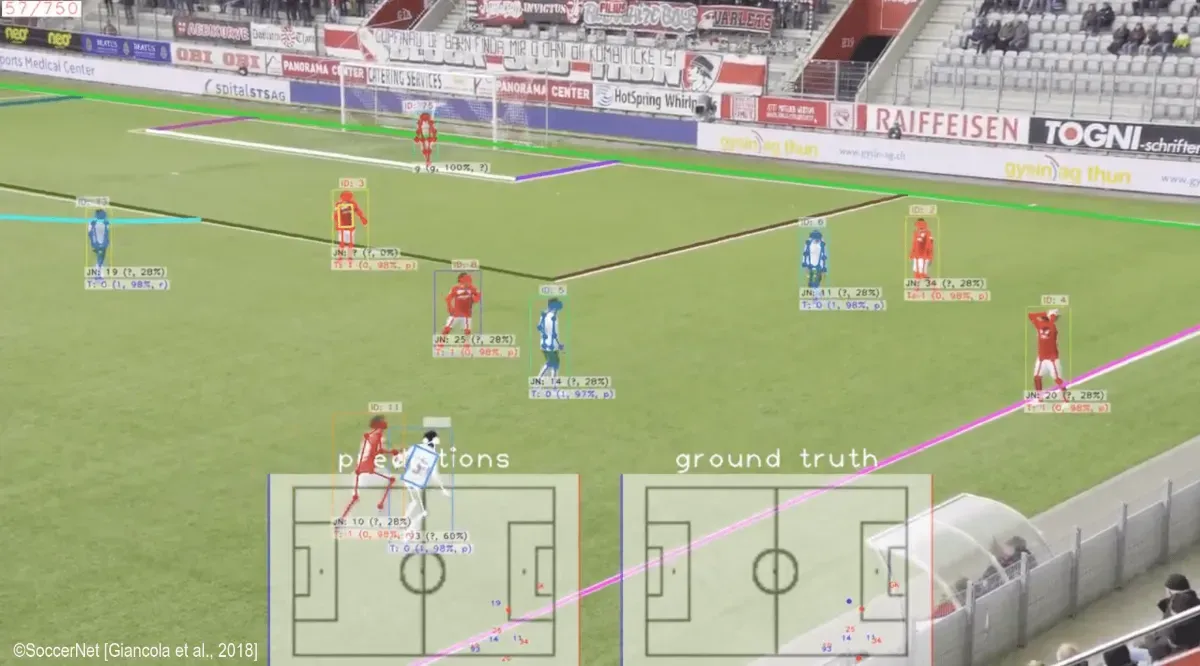 「SoccerNet GSR Challenge」は、サッカーの試合映像を用いて、選手の役割、位置情報、試合の進行状況を把握する「状態認識(Game State Reconstruction)」の自動化を目的としたもの。サッカーにおけるデータ解析、戦術分析、選手のパフォーマンス向上に向けた重要な技術です。