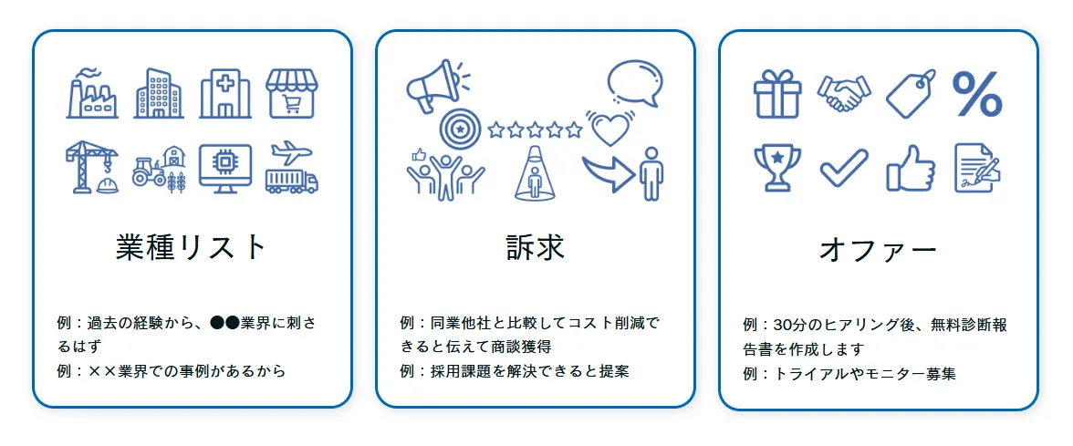 業種テスト:リスト内の業種を変更し、反応が得やすい業界を見極める。